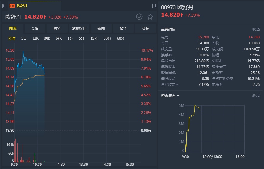 花旗称,欧舒丹19财年的核心净利润为1.17亿欧元,主要由于推广成本及有效税率下降。按固定汇率计算,期内收入增9%,由自然增长4%及LimeLife的贡献带动。由于LimeLife录轻微亏损,经营溢利率下降0.1个百分点;撇除LimeLife则增长0.8个百分点,大致符合该公司管理层的目标,并优于该行预期。
