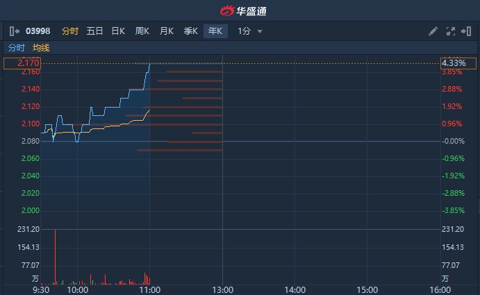 智通财经APP获悉,波司登(03998)盘中突获强力拉升,站上5日线,截至11时整,涨4.33%,报2.17港元,成交额达1529万港元。