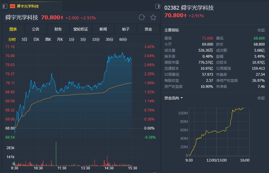 报告还称,舜宇目前股价相对2019年及2020年盈利预测之市盈率分别为21倍及15倍,而该行预测2020-2023年纯利复合增长率可达20%。