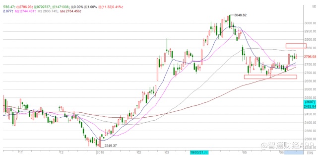但短线上,特别在上证50的图表中,有机会在本周先反弹一波,至2850-2900点左右。