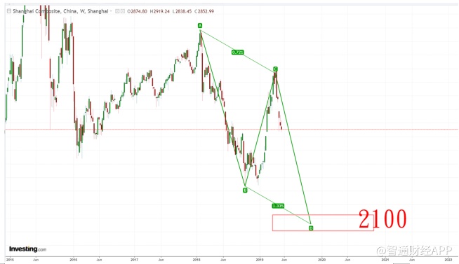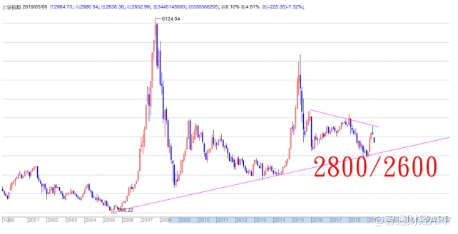 笔者先讨论上证的走势,第一、上证目前最乐观的走势是在2800/2600点的位置见底。