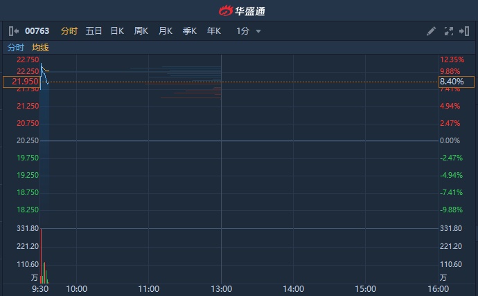 智通财经APP获悉,中兴通讯(00763)早盘跳空高开后继续上行,截至9时36分,涨8.4%,报21.95港元,成交额达1.749亿港元。