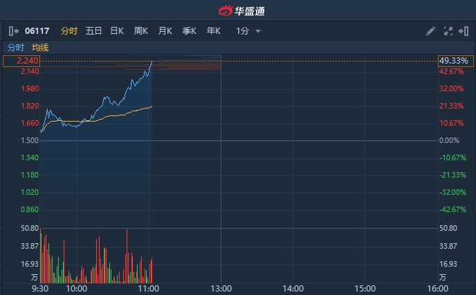 智通财经APP获悉,日照港裕廊(06117)首日挂牌倍受追捧,早盘小幅高开后继续上攻,截至11时2分,涨49.33%,报2.24港元,成交额的达2899万港元。
