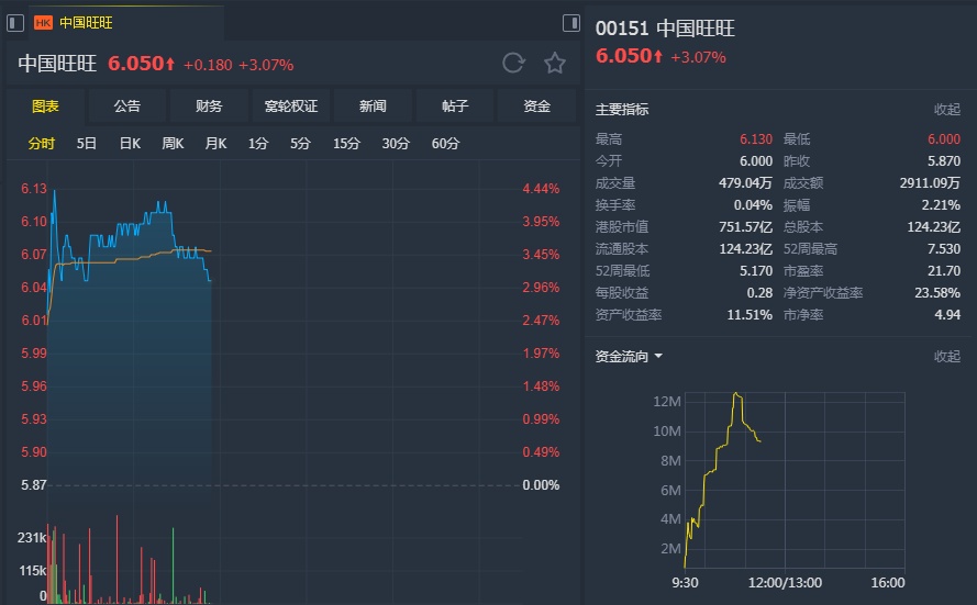 该行还称,中国旺旺20至21财年的每股盈利预测高出市场预期6%-9%,随着新产品的出现,中国旺旺的饮料及零食业务将会以高于市场预期的速度上轨道,但也忧虑其成本上升带来的影响。