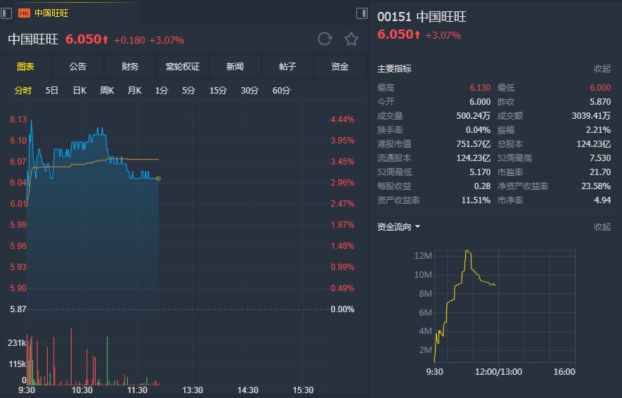 智通财经APP获悉,瑞信发表研究报告,将中国旺旺(00151)2020至2021年度盈利预测调高3至4%,达到36.62亿元人民币及38.6亿元人民币,并将其目标价由6.2港元微升至6.4港元,维持评级“中性”。