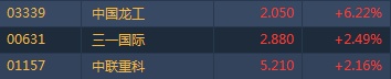 智通财经APP获悉,1-5月挖掘机销量同比增逾15%,重型机械股集体走高。截至14时19分,中国龙工(03339)涨6.22%,报价2.05港元,三一国际(00631)涨2.49%,中联重科(01157)涨2.16%。