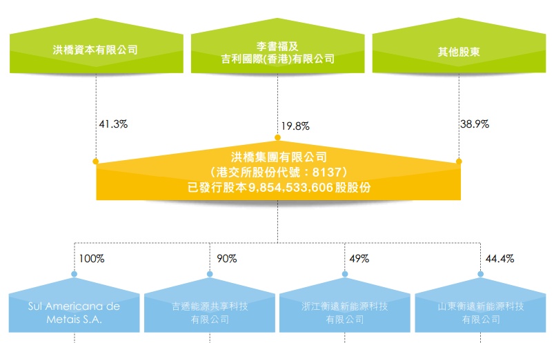 目前李书福及吉利持有洪桥集团19.8%股权。根据官网和财报的描述,洪桥集团的发展战略为“力争成为吉利新能源汽车的动力电池主力供货商”。