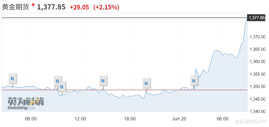 智通财经APP获悉,周三,COMEX黄金期货收涨1.01%,报1364.3美元/盎司,创近3年以来收盘新高。截至发稿,COMEX黄金期货大涨2.15%,升破1370美元/盎司关口,报1377.85美元/盎司。