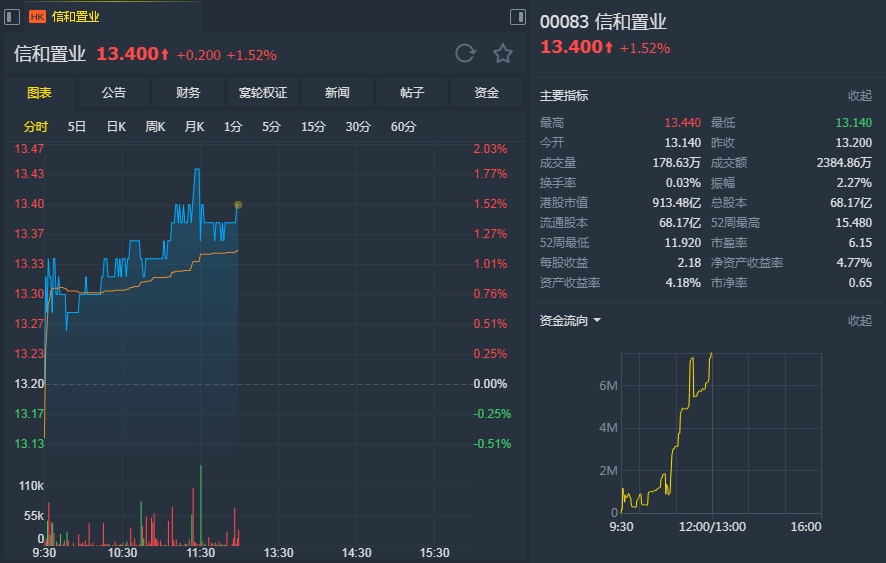 智通财经APP获悉,大和发表研报称,在现时环境下,信和置业(00083)相对吸引力提升,预计受推售观塘裕民坊重建项目“凯汇”支持,19财年的每股派息有望增加,将其投资评级由“优于大市”调升至“买入”,维持目标价15.9港元不变。