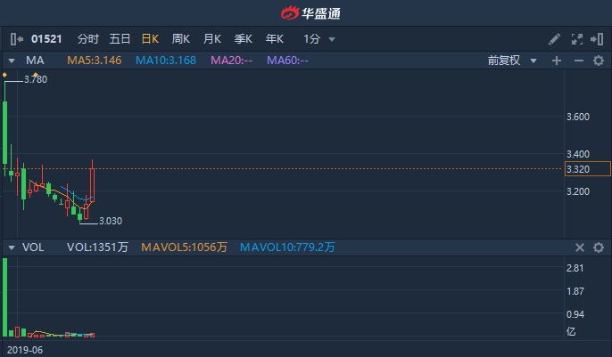 智通财经APP获悉,次新股方达控股(01521)上市首日冲高后持续回落,近两日在大市反弹带动下回暖。截至13时42分,涨6.07%,报3.32港元,收复招股价3.2港元,成交额达4422万港元。