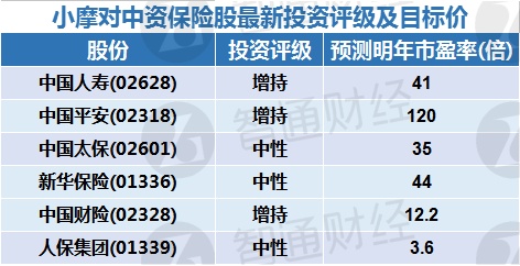 报告显示,内险股中,小摩首选中国财险(02328)、中国平安和中国人寿(02628),目标价分别为12.2港元、120港元、41港元。