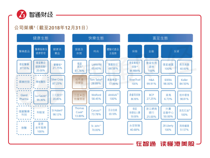 表面上,复星国际是一家投资控股公司,但更准确来说,复星是一家产业运营公司。自27年前创立以来,秉承“深度产业运营+产业投资”双轮驱动战略,目前发展为三大生态体系(健康生态、快乐生态以及富足生态),覆盖医药、大健康、旅游、时尚、保险、金融及投资等多个产业领域。