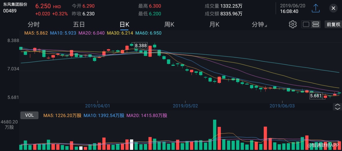 截至今日收盘,东风(00489)涨0.32%,报6.25港元。