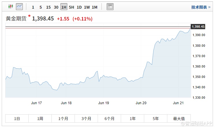 近日黄金期货连日上涨,周三,COMEX黄金期货收涨1.01%,报1364.3美元/盎司;昨日(周四)COMEX黄金期货大幅收涨,盘中最高上探至1394.00美元/盎司,升至5年高位。截至发稿,COMEX黄金期货报1398.45美元/盎司。