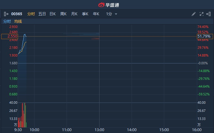 智通财经APP获悉,紫光控股(00365)盘中放量拉升,突破所有均线压制,截至9时44分,涨51.79%,报2.55港元,成交额达861.5万港元。