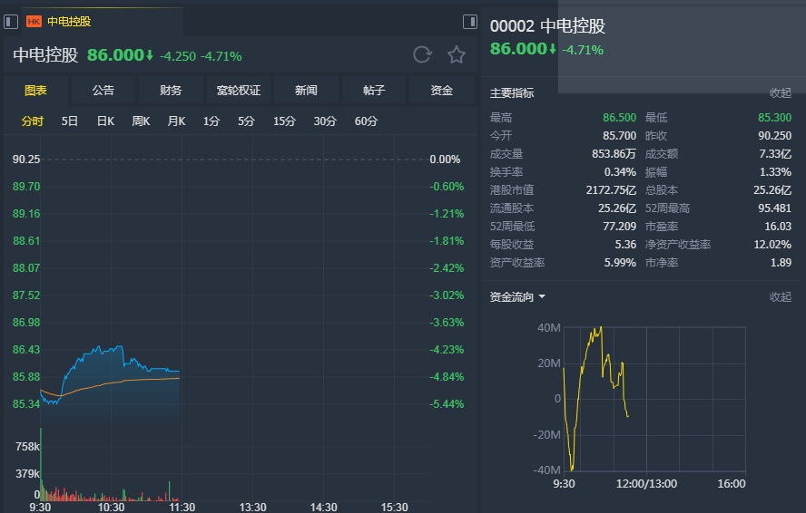 智通财经APP获悉,瑞银发表研究报告,将中电控股(00002)目标价由95港元降至93港元,维持“中性”评级,并分别下调2019盈利预测7%,2020-21年盈测约4%。