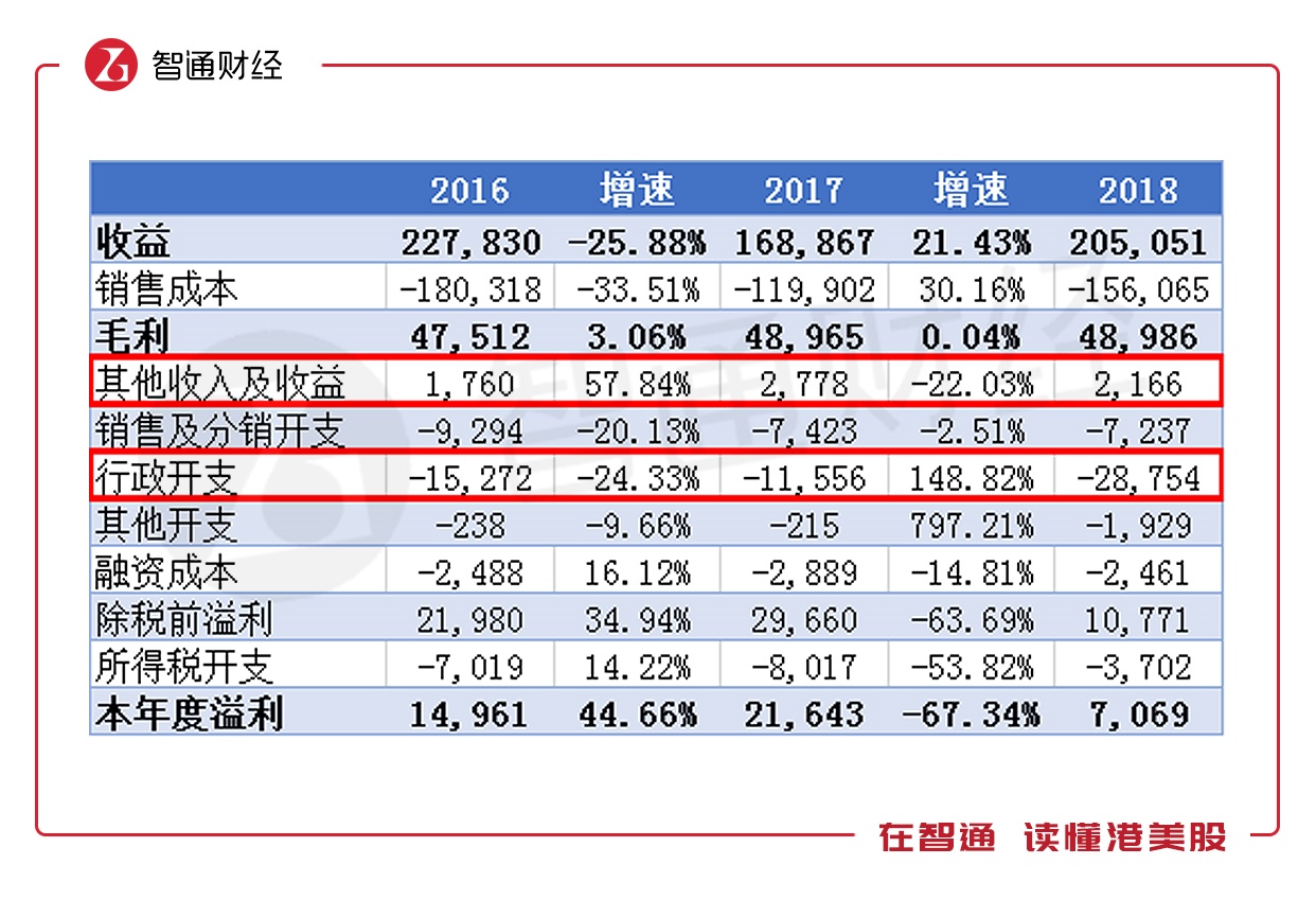 相比之下,公司年度利润的变动与收入变动呈相反方向。2016-2018三个财年间,公司实现利润1496万、2164万、706万元人民币,同比变动44.66%、-67.34%。智通财经APP了解到,公司其他收入及行政开支对利润变动影响较大。