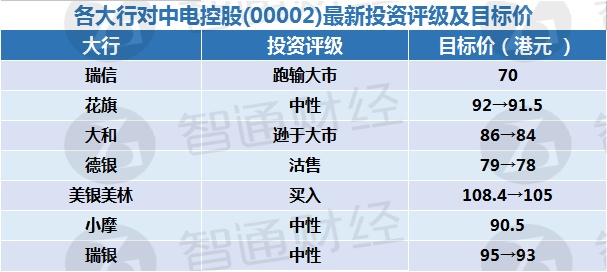 一、各大行对中电控股(00002)最新投资评级及目标价:
