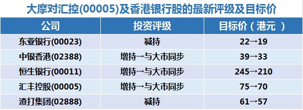 四、大摩对汇控(00005)及香港银行股的最新评级及目标价: