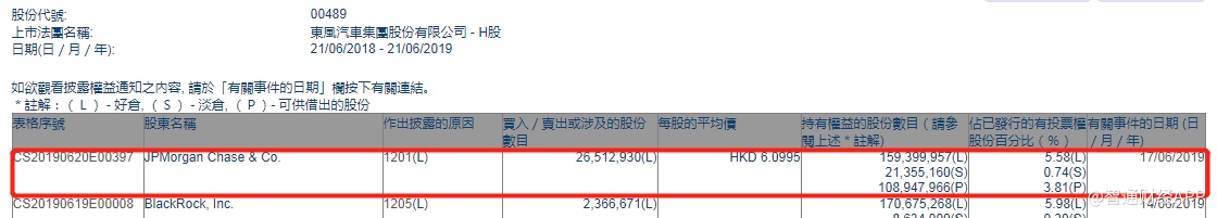 智通财经APP获悉,根据联交所资料显示,摩根大通于6月17日减持东风集团股份(00489)2651万股,每股作价6.10港元,总值约1.62亿港元,最新持股数目约1.59亿股,最新持股比例为5.58%。