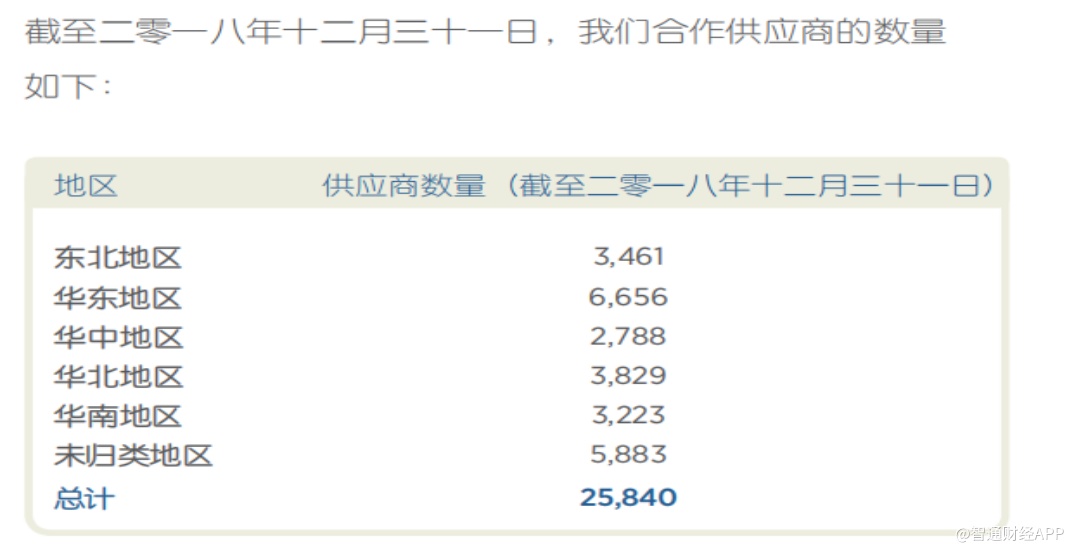 多业态、全渠道发展使高鑫供应链体系愈发庞大,截至2018年末,公司供应商数量达到25840家,2018年新通过了公司审查程序,并且现在已展开合作的供应商为2736家。