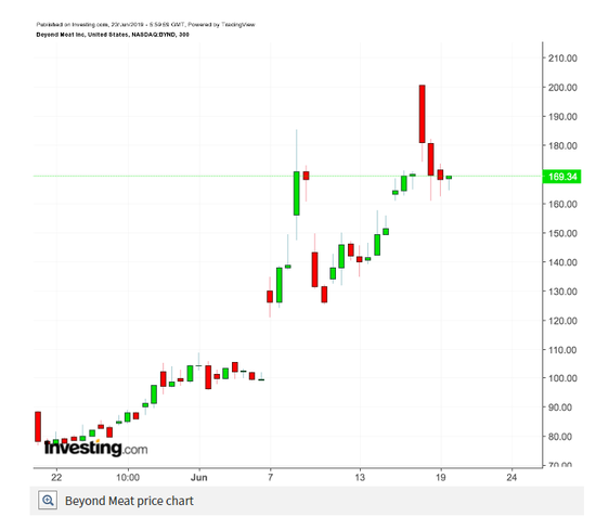例如,Beyond Meat Inc (BYND.US)自上个月上市以来涨超500%。毫无疑问,公司拥有强大的动能且能够很快盈利,但股价急剧的暴涨很容易出现调整。