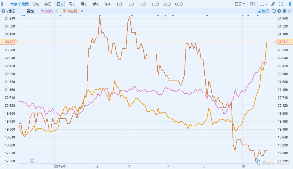 (大家乐为橙色K线,大快活为紫色K线,翠华为棕色K线)