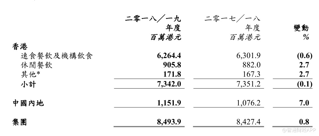 值得注意的是,过去一年,大家乐是在收入之所以能实现稳健的增长,主要依赖于中国内地市场的贡献。数据显示,大家乐香港业务收入出现0.1%下滑,但是内地业务出现7%的增长,带动整体收入的正增长。