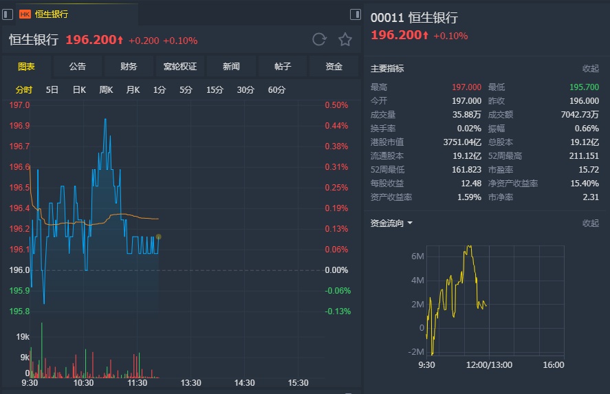 报告还显示,花旗微升恒生银行今年每股盈利预测0.3%至13.26港元,下调对其2020年每股盈利预测2%至13.26港元,降其2021年每股盈利预测2.1%至13.89港元。同时维持19/20/21年每股全年派息预测分别为8/8.5/9港元。另外,该行预计恒生明年净息差会面临收窄压力。
