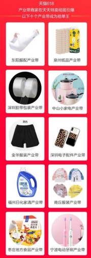 截至6月18日,中国产业带商家已从天天特卖“年中特卖会”抢走4.2亿笔订单,其中单量排名前列的产业带,像东阳服配产业带的防晒冰袖、泉州纸品产业带的超吸水纸巾、福州日化产业带的皂液洗衣液、深圳包装胶带产业带的网红双面胶带等,无一例外全部由C2M模式引爆。