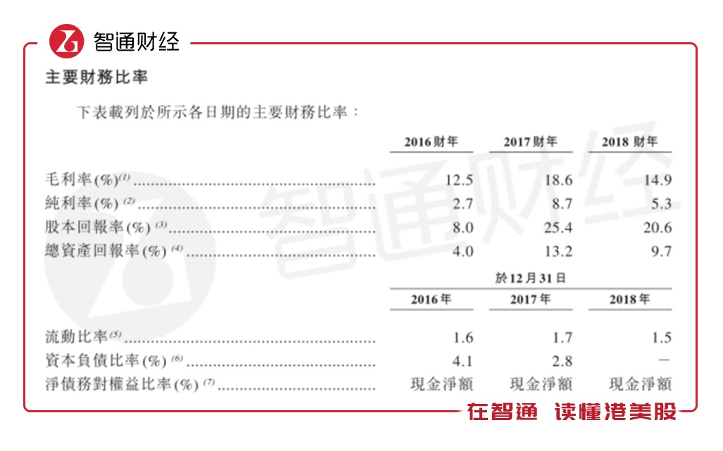 其他指标方面,公司于2016-2018财年间毛利率分别为12.5%、18.6%、14.9%。纯利率分别为2.7%、8.7%、5.3%。可以发现,公司于2017财年毛利率出现较高增长,主要由于公司在2017财年确认的澳门一间酒店翻新工程承包项目的毛利及毛利率较高。