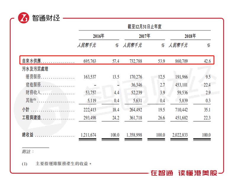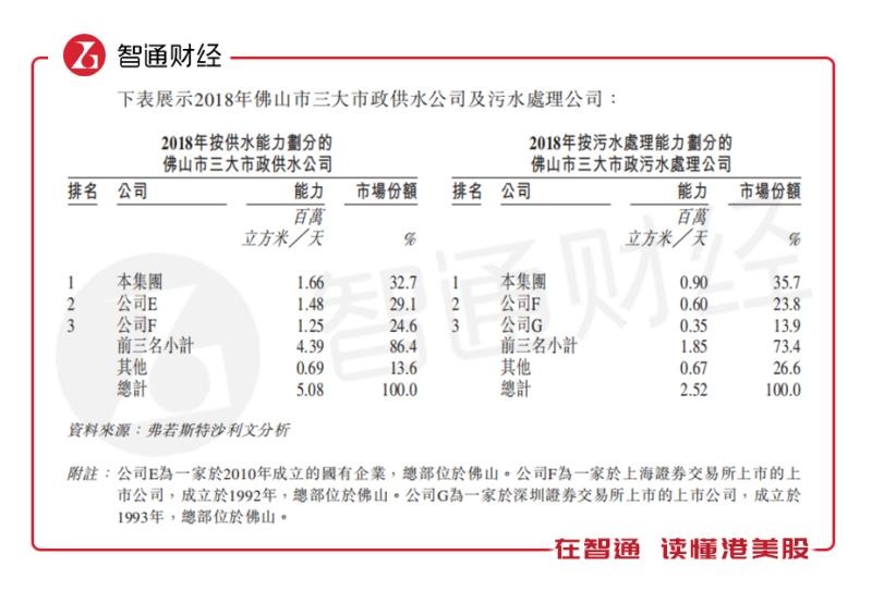佛山水务招股书显示,公司为客户提供全方位的水务环保综合服务,包括自来水供应、污水与污泥处理及工程与建造。