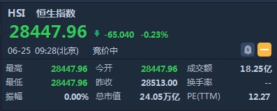 智通财经APP获悉,恒生指数开盘跌0.23%,报28447.96点。国企指数跌0.39%,报10909.96点。红筹指数涨0.22%,报4435.7点。大市盘前成交18.25亿港元。隔夜美股涨跌互现。COMEX黄金期货收涨1.66%,报1423.3美元/盎司,再创近6年来新高。