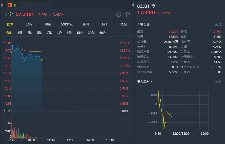 智通财经APP获悉,小摩发表研究报告称,李宁(02331)发盈喜,表示上半年经常性盈利达5.1亿元人民币,同比升90%,胜预期,而该行也对销售增长和盈利扩张感到惊喜,上调其19-21年盈利预测8-29%,经常性盈利年复合增长预期为35%,目标价由15.6港元升至18港元,维持“增持”评级,并列为行业首选。