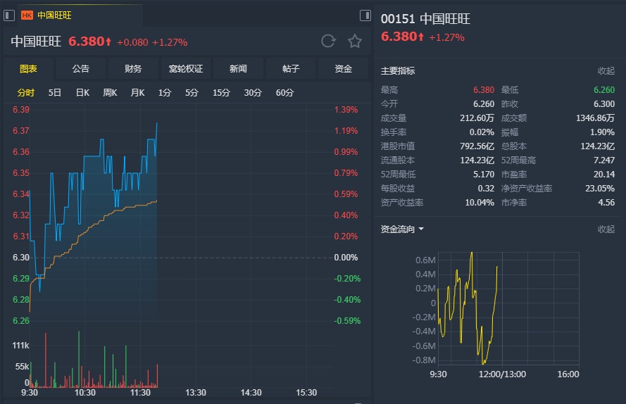 智通财经APP获悉,大和发表研究报告称,旺旺(00151)在中国市场内产品成熟,自由现金流收益率达6%,属吸引水平,公司又承诺通过股息派发其自由现金流及回购股份,加上资本开支较低,因此认为公司估值具吸引力。该行维持旺旺“买入”投资评级,目标价则由8.2港元调低至7.7港元。
