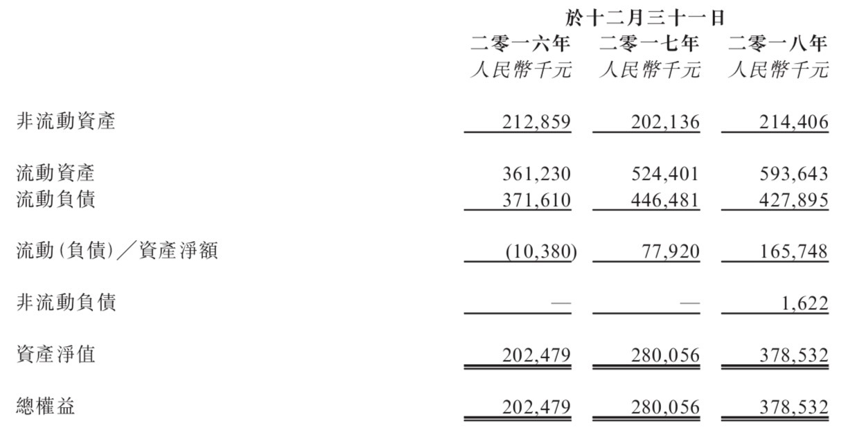 于2016年12月31日,该公司录得流动负债净额约人民币10.4百万元,主要由于2016年底就进行正常业务而增加银行借款约人民币300.1百万元。流动资产净值由2017年12月31日的约人民币77.9百万元增加至2018年12月31日的约人民币165.7百万元。