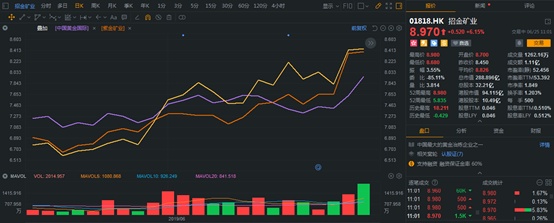 金价连破新高之际,作为国内黄金行业最纯正龙头企业之一的招金矿业(01818),其股价已然开启快速放量冲涨模式。