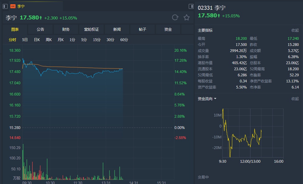 该行认为,市场低估了李宁批发强劲及在线销售动力两大因素,预期该公司2019年上半年盈利将按年上升不少于4.4亿元人民币,相当于较该行早前预期高至少18%。