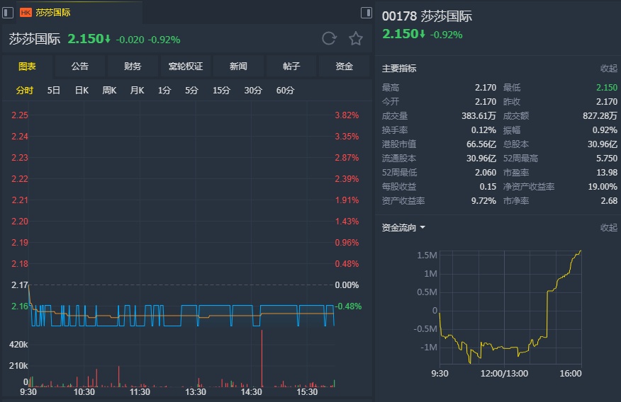 智通财经APP获悉,天风研究报告显示,莎莎国际(00178)当前全年派息0.16港元,派息率超100%,而股息收益达7%,较为吸引。但当前15倍的市盈率或仍有下行空间,继续维持“卖出”评级,目标价下调至1.9 港元。