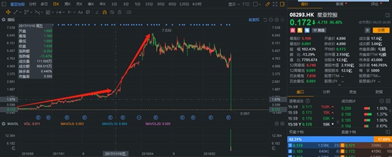 2017年10月之后,星亚控股转变“第二形态”。智通财经APP了解到,从2017年10月开始,星亚控股的股价增速提升了一个档次,以当时股价为起点,短短半年内星亚冲到了历史峰值的7.03港元位置,市值来到了近88亿港元,涨幅超过2.5倍。