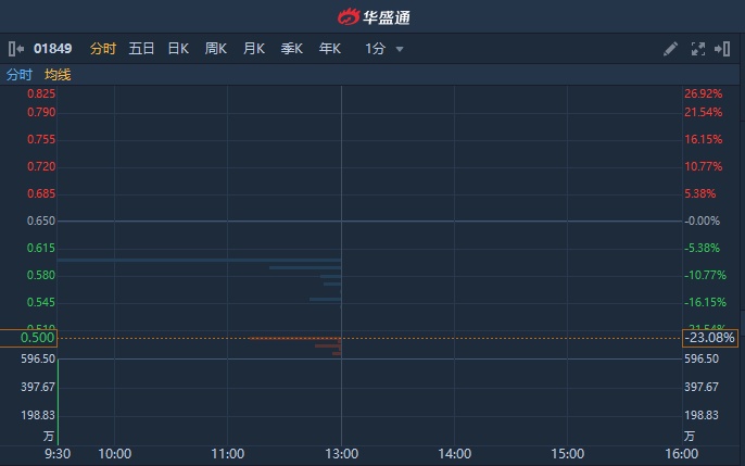 智通财经APP获悉,创世纪集团控股(01849)首日挂牌,截至9时20分,跌23.08%,报价0.5港元,成交额1055万港元。