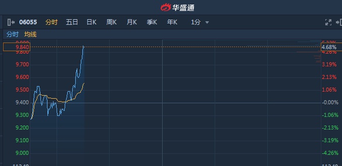 智通财经APP获悉,次新股中烟香港(06055)再度破顶,盘中放量股价快速拉升,高见9.85港元较发行价4.88港元高逾101.8%,截至10时30分,涨4.47%,报价9.82港元,成交额9995万。
