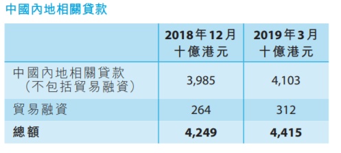 而银行业的中国内地相关贷款由2018年第4季的42490亿港元增加3.9%,至2019年首季的44150亿港元(占总资产额的17%)。