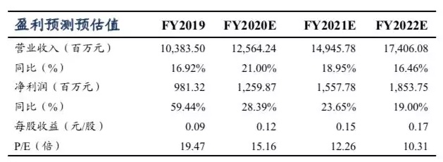 在FY19业绩大幅超预期的基础上,我们看好公司沿着聚焦主航道的发展战略,持续提高产品力,强化品牌力,带动公司收入利润保持强劲增长。我们预计公司FY20/FY21/FY22净利润为12.6亿/15.6亿/18.5亿,同比增长28.4%/23.6%/19.0%,对应PE 15X/12X/10X。FY19全年派息0.08港元,派息率超过70%,股息率约4%。公司目前兼具强增长、高股息的属性,继续维持“买入”评级。