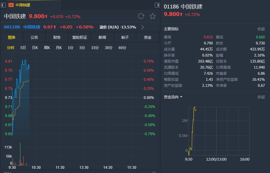 智通财经APP获悉,交银国际发表报告称,预期中国铁建(01186)第二季合约增长及毛利率会继续改善,维持“买入”的投资评级,目标价维持12.2港元。