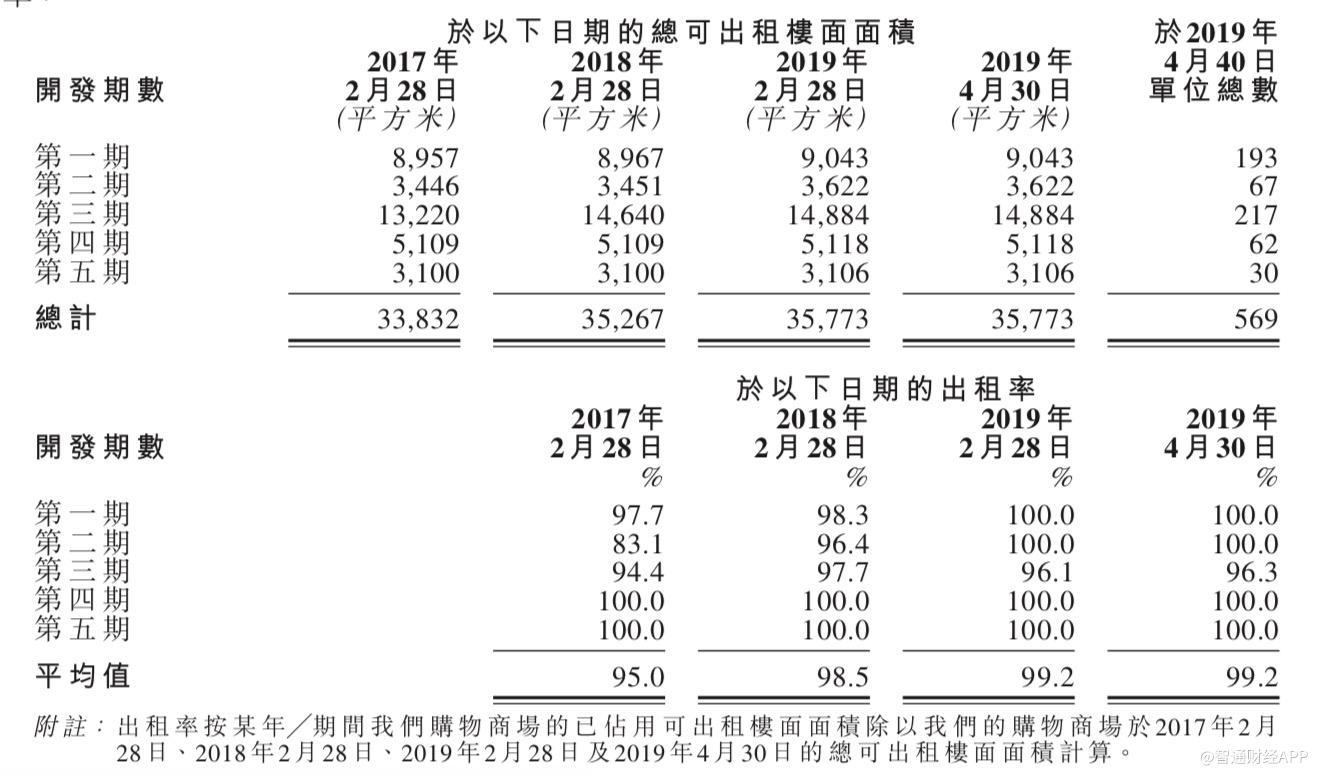 招股书显示,Dragon City CF及Dragon City AP座落两个毗连地段(即CF地段及AP地段),并分五期开发。Dragon City CF包括第一期、第二期、第四期及第五期,而Dragon City AP包括第三 期。购物商场的第一、三、四及五期各为两层高建筑,而第二期为三层高建筑。于2019年2月28日,该集团的购物商场的总建筑面积为48,431平 方 米,及总可出租面积为35,773 平方米。