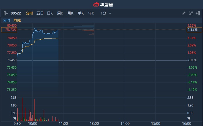 智通财经APP获悉,ASM太平洋(00522)早盘稳步走升,截至10时49分,涨4.32%,报79.75港元,成交额达2776万港元。