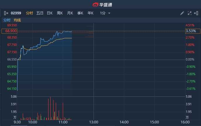 智通财经APP获悉,药明康德(02359)近两日股价显著回升,上穿所有均线。截至11时16分,涨3.53%,报68.9港元,成交额达3678万港元。