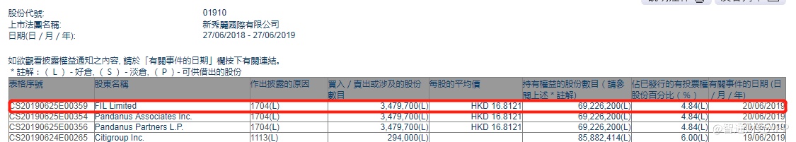 智通财经APP获悉,根据联交所资料显示,富达国际于6月20日减持新秀丽(01910)347.97万股,每股作价16.81港元,总价值约5849万港元,最新持股数减至6922.6万股,最新持股比例减至4.84%。