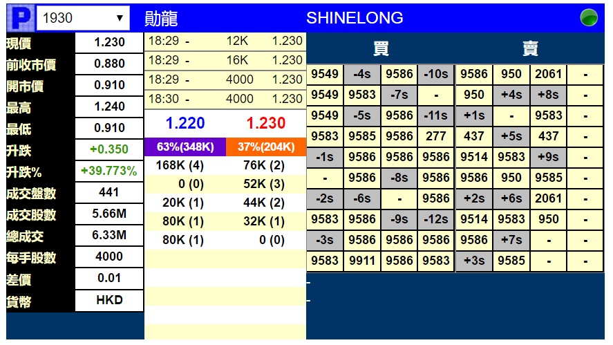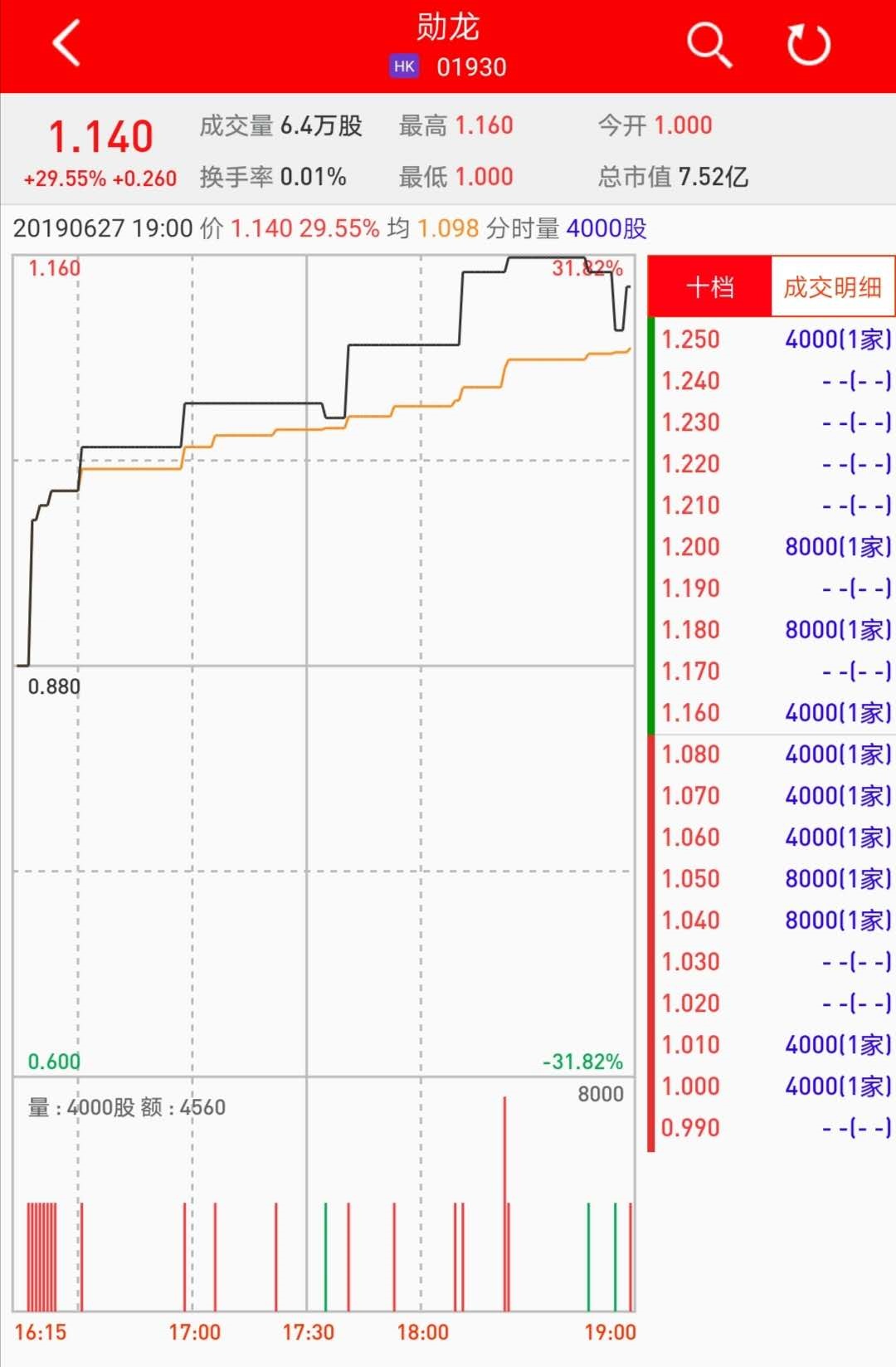 智通财经APP获悉,勋龙(01930)将于6月28日挂牌,上市前夕,辉立证券暗盘交易显示其收报1.23港元,较招股价0.88港元涨39.77%。每手4000股,不计手续费,每手赚1400港元。